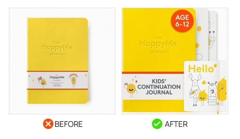 Adding a box helps consumers understand it’s a real brand. The text additions emphasize the key FAQs customers have anxiety about such as skin type.